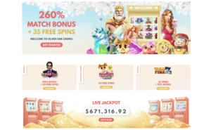 Dieses Angebot ist Neukunden vorbehalten. Sie können für Ihre Einzahlung 260% Bonusguthaben plus 35 Freispiele erhalten. Dazu nutzen Sie den Bonuscode SILVER260 des Casinos bei der ersten Einzahlung.